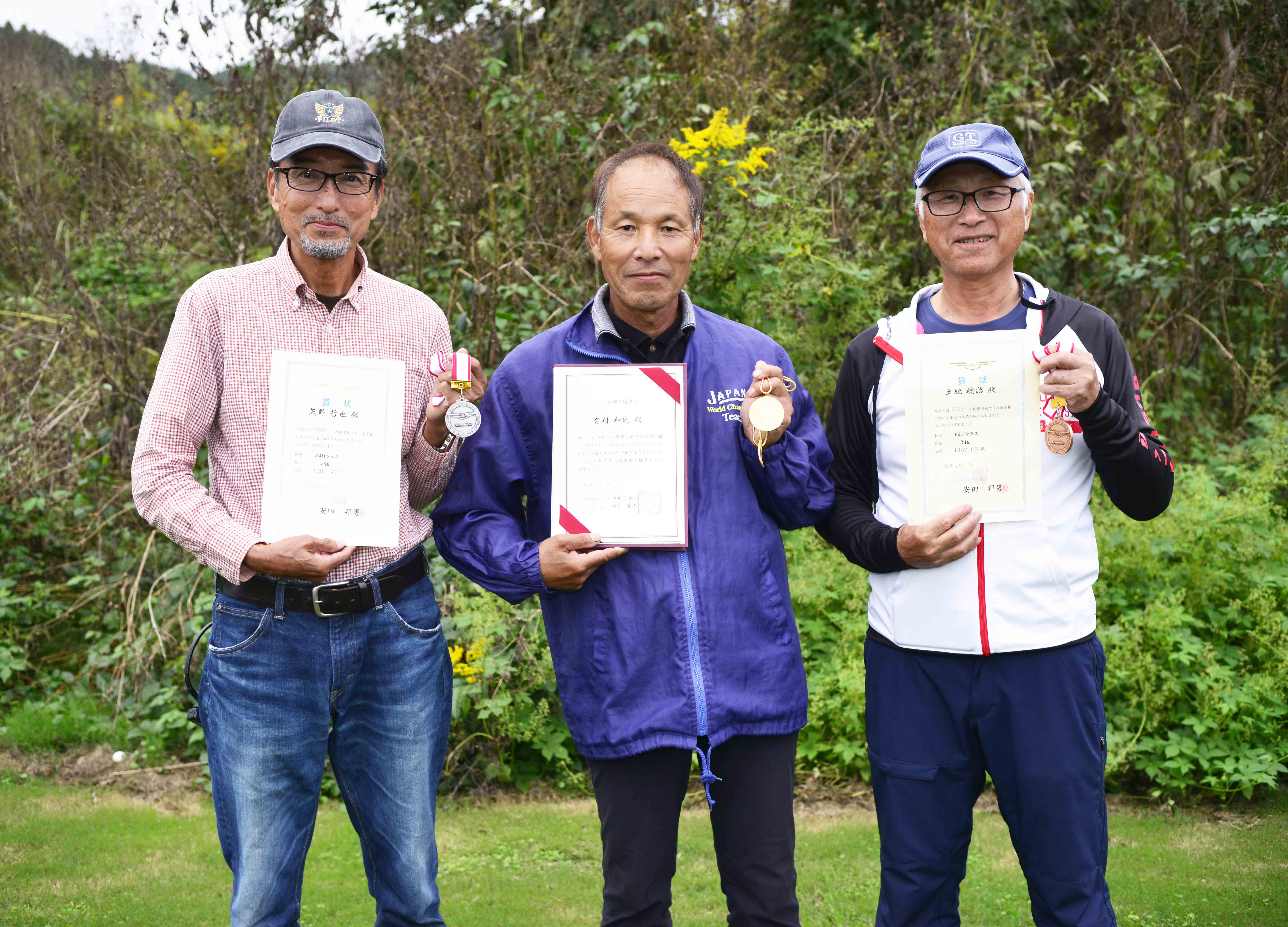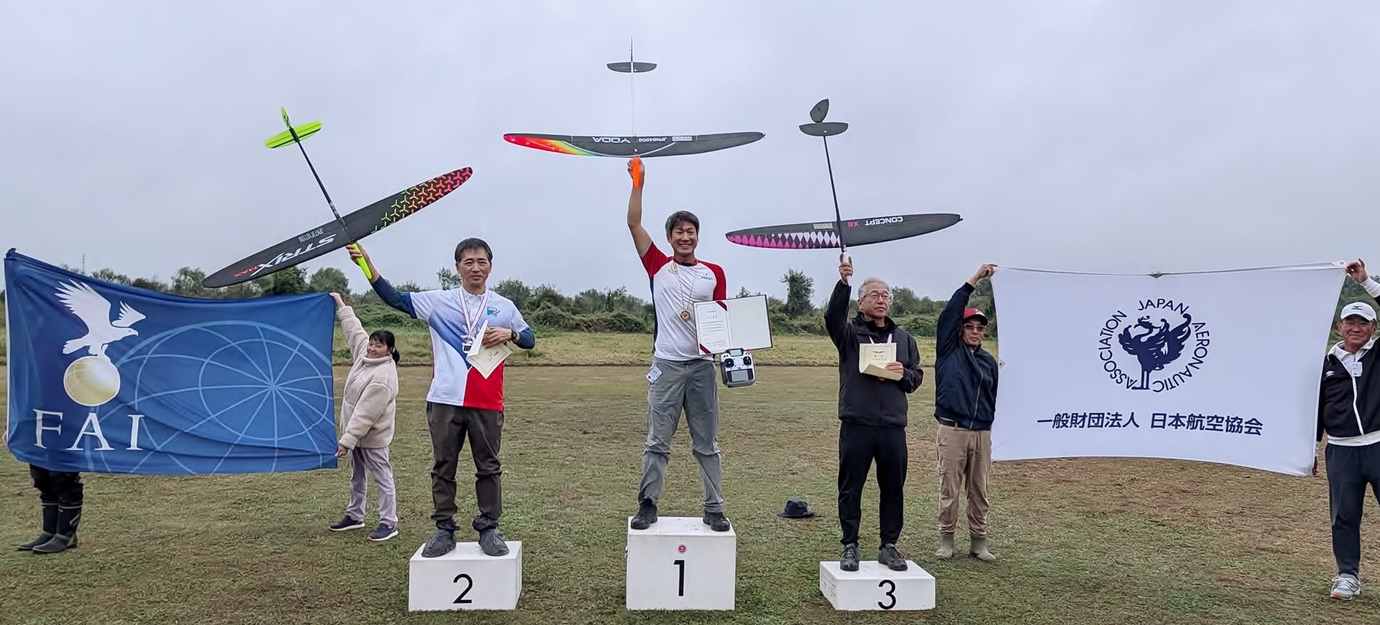 ホーム 国際航空連盟 皆様のご多幸と安全飛行をお祈りします。 2024年度HPへリンク 本年度事業計画ほか順次更新を行いますのでよろしくお願いします。 事業計画(競技会情報)更新しました。 ***** 無人航空機 関係に付いて ***** 2025年6月14日 無人航空機登録関係 高度150m以上飛行の許可申請 新ラジコンクラブ届け出 等は 左の「無人航空機関連情報」ページを参照ください。 ***** 連盟 会員の活動例 ご紹介 ***** New 2025年11月16日関宿滑空場で「空まつり」に協力参加模型飛行機を紹介しました。 当日のビデオへのリンク 3:06:39ころから私たちの紹介が始まります。 ***** 連盟 会員の活動例 ご紹介 ***** 関西地域会員有志の皆さんが、2025年8月3日 日曜日 生石高原にて 「2025年 和歌山 生石高原夏休みこどもラジコングライダー体験会」を開催されました。 クリックして参照。 ****<日本選手権 速報 12/2>**** New 2025年F3P日本選手権、11 月29,30日 三重県志摩市で開催されました。 F3P-AP選手権者:石川惇樹(愛地)2位:横井一輝(愛知)3位:村田敏弘(三重) F3P-APの飛行ビデオへリンク 成績結果へリンク F3P-AFM選手権者:横井一輝(愛知)2位:石川惇樹(愛地)3位:麻和博(長野) F3P-AFMの飛行ビデオへリンク 成績結果へリンク ****<日本選手権 速報 11/25>**** 2025年F!ABC日本選手権、11 月1~3,23,日 千葉県旭市で開催されました。 F1Aクラス選手権者:和田光信(東京)2位:山本修(東京)3位:田久保潤一(東京) F1Bクラス選手権者:小我野光博(京都)2位:小池勝(愛知)3位:熊井恒雄(神奈川) F1Cクラス選手権者:小平悦久(東京)2位:関沢一雅(東京)3位:江連明夫(千葉) 成績へのリンク ****<世界選手権 速報>**** 2025F9A(ドローンサッカー)世界選手権が11月15~18日中国・上海にて開催されました 日本代表以下2チームが参加 F9A-A(40cm)に、三河ドルフィンズ(愛知) (田村和大、森山誠、森川佑貴、野澤成裕、土林匠) F9A-B(20cm)に、群馬クレインドローンシールズ(群馬) (荒川智、菅原颯太、阿久沢俊平、齋藤朔、清水玲、一倉和果奈) ローンサッカー紹介ビデオへリンク 大会HPへリンク FAI大会写真へリンク ****<日本選手権 速報 11/8>**** 2025年F3K日本選手権、10 月24-26日 千葉県野田市で開催されました。 選手権者:西村 悠(東京) 2位:上野 泰寛(岡山) 3位:吉河 昭光(栃木) 成績へのリンク ****<日本選手権 速報 11/8>**** 2025年F4スケール日本選手権、10 月18-19日 千葉県野田市で開催されました。 成績へのリンク F4C選手権者:久保脇 雅也(宮崎) 2位:塙 隆之(千葉) 3位:田村 基代治(山口) F4H選手権者:有村 和則(宮崎)2位:矢野 哲也(高知)3位:土肥 稔治(三重) SSC-A優勝:今村 信一郎(宮崎)2位:藤本 章司(兵庫)3位:芝山 峰冶(兵庫) ****<日本選手権 速報 11/8>**** New 2025年F3C日本選手権、10 月9-12日 千葉県木更津市で開催されました。 選手権者:伊藤 寛規(静岡) 2位:磯 匡俊(埼玉) 3位:鬼澤 一史(埼玉) 最終成績へリンク ****<日本選手権 速報 10/11>**** 2025年F3A日本選手権、10 月1-5日高知県高知市で開催されました。 RC曲技委員会HPへリンク 選手権者:音田哲男(千葉) 2位:鈴木悠平(千葉) 3位:鈴木貴之(千葉) 予選成績へリンク 採点表へリンク 決勝成績へリンク 採点表へリンク ****<日本選手権 速報 10/6>**** New 2025年F2B日本選手権、9 月18-21日岐阜県高山市で開催されました。 選手権者:村松 督浩(山梨) 2位: 能米 昭一郎(福井) 3位:比気 勝(埼玉) 成績結果他へリンク ****<日本選手権 速報 10/1>**** 2025年F5J日本選手権、9 月27-28日徳島県三好市で開催されました。 選手権者:坂井 宏行(広島)2位:西村 悠(東京) 3位:田中 栄吾(東京) 注)競技結果2位のニキータショルム選手は、 ウクライナ籍の為、参考記録よって以下操上表彰 競技成績へリンク ****<世界選手権 速報>**** 2025SM(モデル・ロケット)世界選手権が8月22~28日Zrenjanin/セルビアにて開催されました 大会HPへリンク S1B Senior 19位:寺尾卓真 39位:尾崎就 S1A Junior 26位:小松繋太 31位:柿本侑里 33位:中村晟 日本チーム:9位 S3A Junior 31位:柿本侑里 44位:宇田隆倖 44位:小松繋太 日本チーム:15位 S5C Senior 28位:寺尾卓真 S6A Junior 28位:雨甲斐奏輔 37位:坂本美優 43位:中村晟 44位:清水大和 日本チーム:10位 S9A Senior 47位:寺尾卓真 47位:尾崎就 S9A Junior 28位:雨甲斐奏輔 40位:坂本美優 40位:清水大和 日本チーム:14位 ロケット紹介動画へリンク *****訃報***** 日本模型航空連盟 名誉会長 東 昭 様 (東京大学名誉教授) 2025年8月18日 (享年98歳) ご逝去のお知らせ。 故人のご功績を偲び、ここに謹んで哀悼の意を表します。 NHK特集 トンボになりたかった少年へリンク 東 昭様の記事紹介へリンク ****<世界選手権 速報>**** 2025F3A世界選手権が8月9~16日MUNCIE,INDIANA/USAにて開催されました 団長:小池美穂(東京)3位:音田哲男(千葉)5位:鈴木悠平(千葉) 11位:鈴木貴之(千葉) 団体優勝:USA 2位:日本 3位:オーストリア 大会HPへリンク ****<ワールドゲームズドローン 速報>**** 橋本勇希選手優勝 2025ワールドゲームズでF9U(ドローンレース)が 8月13~16日Chengdu(成都)/中国にて開催されました。 優勝:橋本勇希(大阪) 2位:KWAN Chun Yan(香港) 3位:KIM MinJae(韓国) 女子の部 6位:佐藤姫夏(北海道) ワールドゲームズは