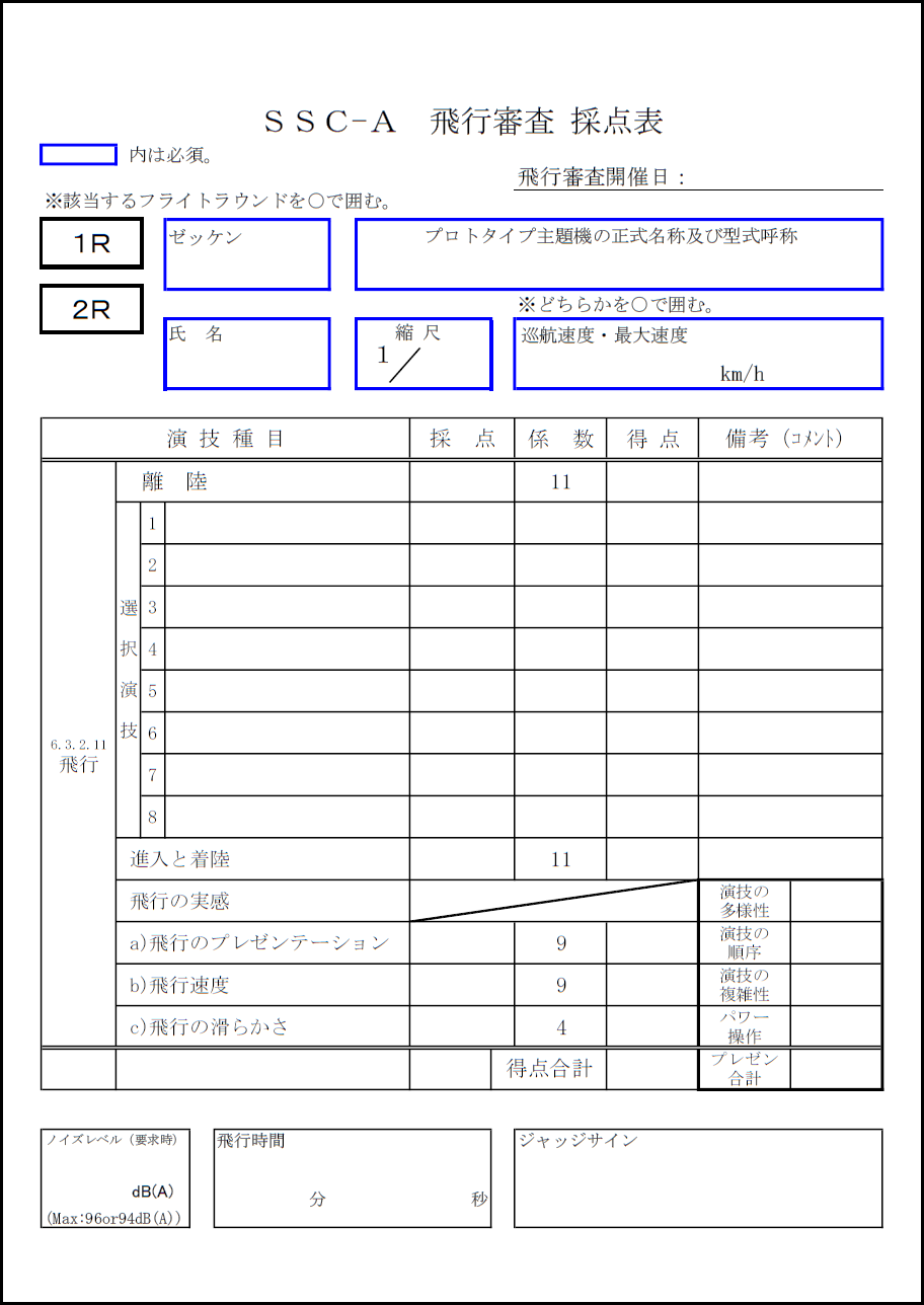 E:付則2−1(飛行審査採点表−1;SSC−Aクラス)