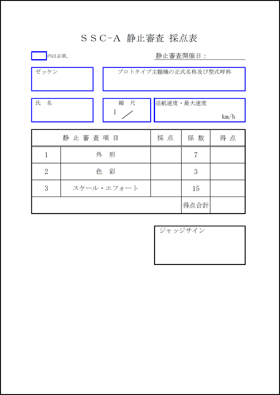 ※E付則3(静止審査採点表;SSC−Aクラス)参照